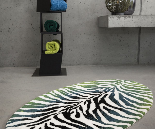 The beautiful Karoo bath mat from Abyss Habidecor is a limited edition. The lovely green and black tones, inspired by zebra patterns in nature, stand out wonderfully against the light background.