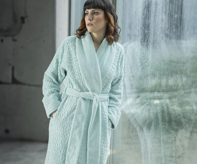 Available in two elegant colors—Ivory and Ice—the Abyss Lodge Bath Robe showcases a stylish shawl collar and practical pockets, combining sophistication with functionality. The robe’s textured appearance adds a refined touch to your loungewear, perfect for those who appreciate fine craftsmanship and attention to detail.