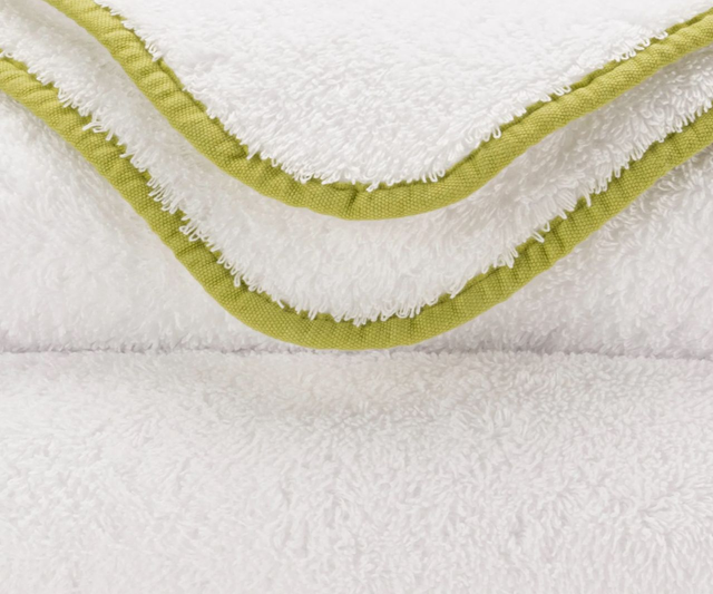 The Abyss Surf bath towels stand out with their pristine white base, providing a clean and classic look that complements any bathroom décor. What truly sets these towels apart, however, are the vibrant, colored edges that add a playful and modern twist to the design. The edges come in a variety of colors, including refreshing Lagoon, vibrant Apple Green, and sunny Banane, allowing you to choose the perfect shade to match your personal style and bathroom.