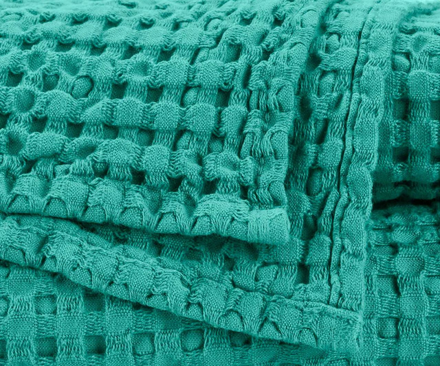 The Abyss Pousada lagoon waffle towels are delightfully light, with a weight of only 300 grams per m². These towels are perfect for those who want a modern, spa-like towel and are looking for thinner towels that absorb moisture very well, as this bath line is superior in absorption and durability.