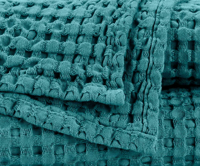 The Abyss Pousada dragonfly waffle towels are delightfully light, with a weight of only 300 grams per m². These towels are perfect for those who want a modern, spa-like towel and are looking for thinner towels that absorb moisture very well, as this bath line is superior in absorption and durability.