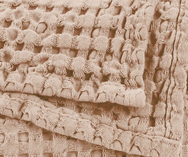The Abyss Pousada nude waffle towels are delightfully light, with a weight of only 300 grams per m². These towels are perfect for those who want a modern, spa-like towel and are looking for thinner towels that absorb moisture very well, as this bath line is superior in absorption and durability.
