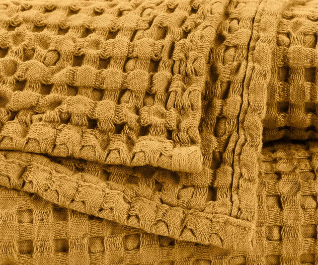 The Abyss Pousada gold waffle towels are delightfully light, with a weight of only 300 grams per m². These towels are perfect for those who want a modern, spa-like towel and are looking for thinner towels that absorb moisture very well, as this bath line is superior in absorption and durability.