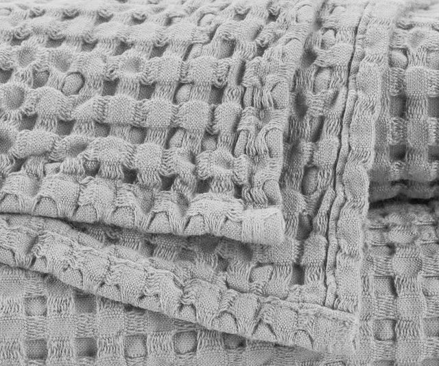 The Abyss Pousada platinum waffle towels are delightfully light, with a weight of only 300 grams per m². These towels are perfect for those who want a modern, spa-like towel and are looking for thinner towels that absorb moisture very well, as this bath line is superior in absorption and durability.