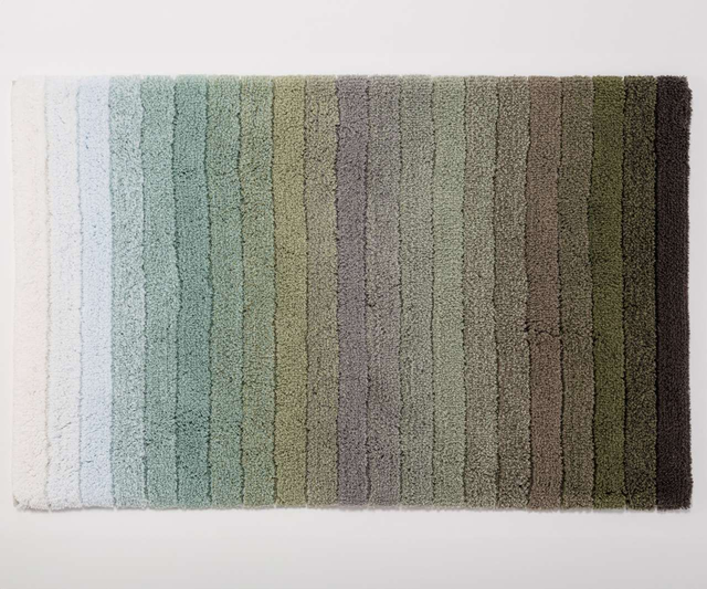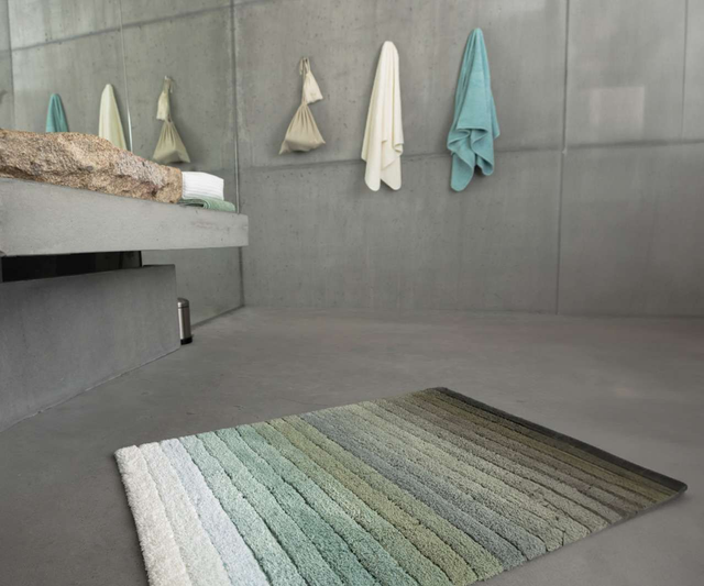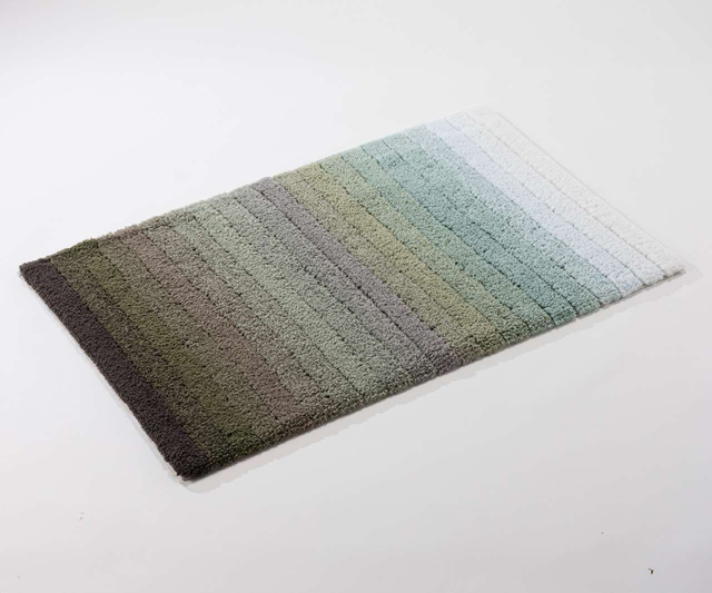 The MAIOR bath rug exudes understated elegance with its gradient from light grey to dark green. Perfectly aligned with modern bathroom color schemes, it seamlessly integrates into the space while adding a stylish accent. Made from 100% Egyptian cotton for a soft, high-quality feel.